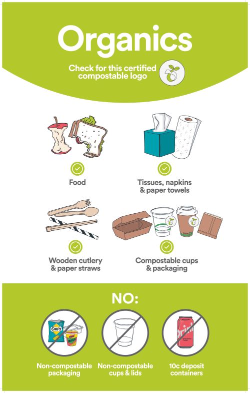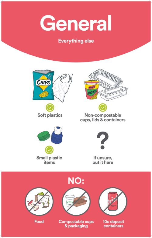 Bin signage incorporates images of the waste to guide you how to separate waste into our four main waste streams.